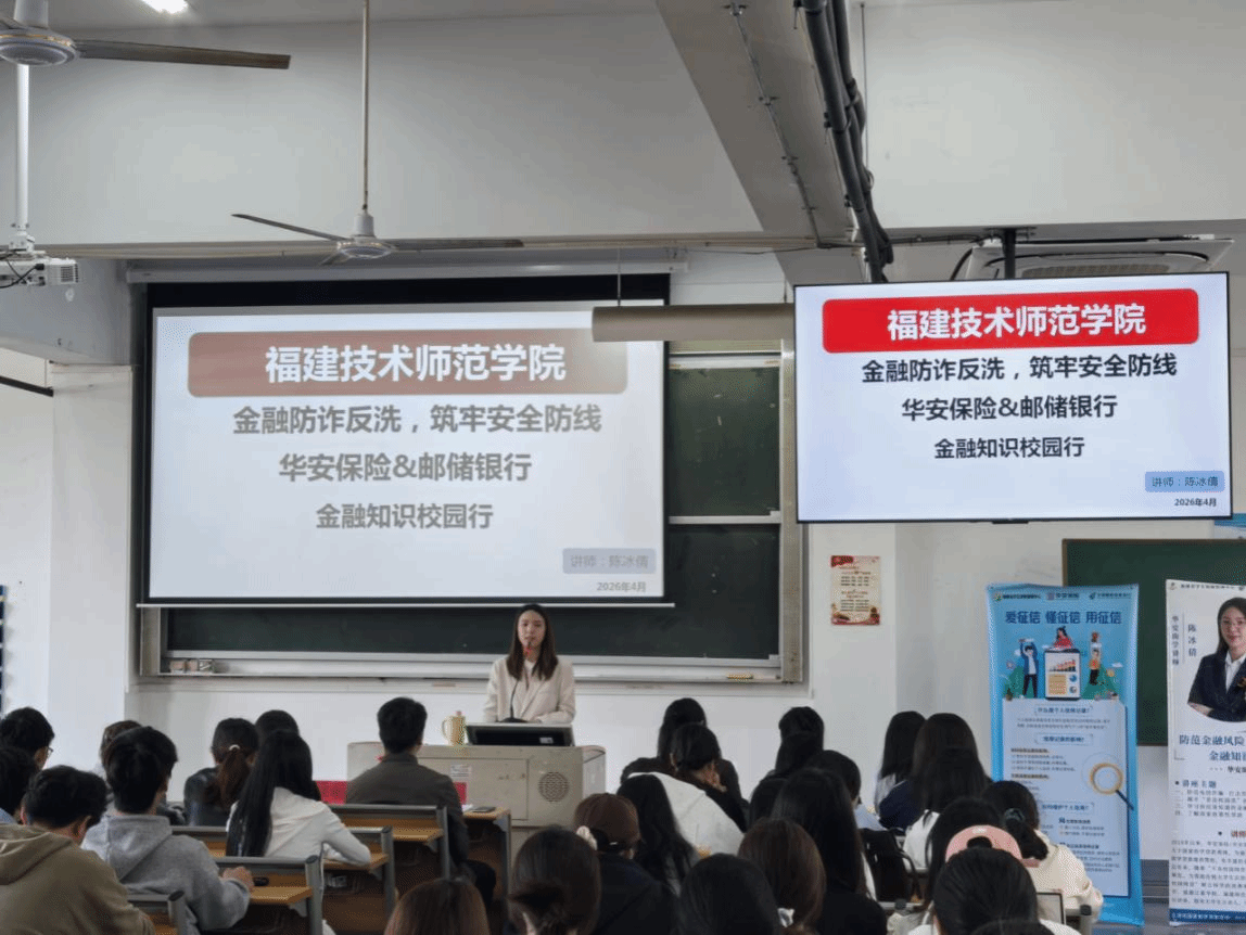 为提高在校学生的金融风险防范意识和能力,筑牢校园金融安全防线,4月1日下午,我校在五马山校区教学楼501举办“金融知识进校园”专题讲座,特邀华安财产保险股份有限公司福建分公司校园金融负责人吴晓真、校园金融讲师陈冰倩一行走进校园,为同学们带来了一场内容丰富、案例详实的金融知识专题讲座。